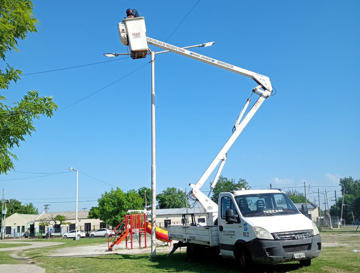 El Municipio de Presidente Perón continúa avanzando con la renovación de luminarias por tecnología LED en diversos barrios y espacios públicos, con el objetivo de incrementar la potencia lumínica y construir una ciudad más sustentable.