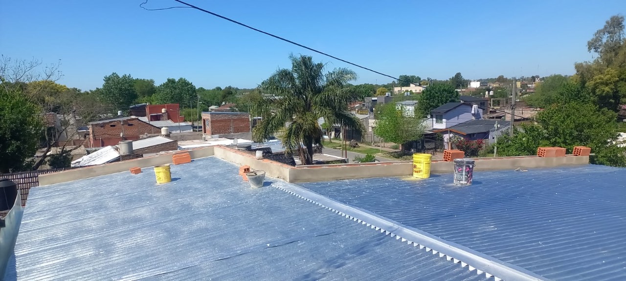 Una estructura metálica de paneles de chapa cubre totalmente las losas con una pendiente a dos aguas y de libre escurrimiento, resolviendo la problemática que afectaba a la comunidad de ese colegio y poniendo en condiciones más dignas sus instalaciones.