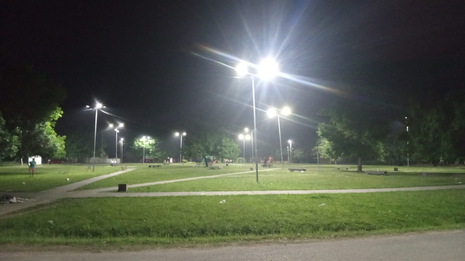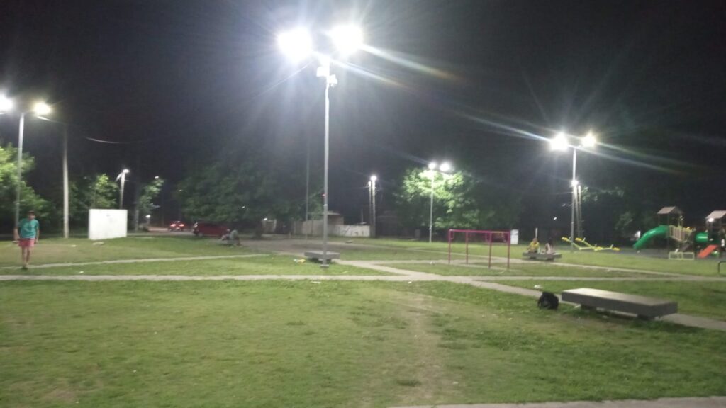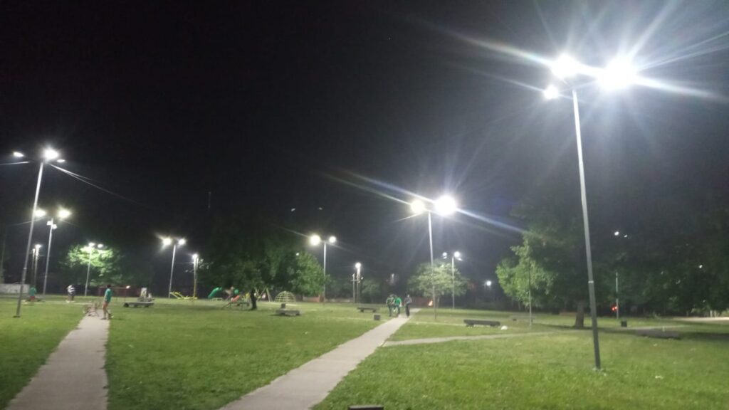 En el marco del plan de recambio del alumbrado público, el Municipio de Presidente Perón realizó la colocación de nuevos equipos de luminarias LED en la plaza del barrio Panamérica.