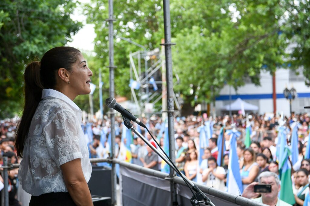 La presidente del bloque Fuerza Patria del HCD, la Concejal Marcela Acuña, y el secretario de Gobierno Dr. Mariano Amato, fueron los encargados de dar la bienvenida a todos los presentes al acto y dar por iniciado el desfile cívico, que fue organizado por la Secretaría de Educación, Cultura y Deportes, en coordinación con otras áreas municipales.