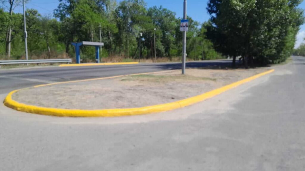 En ese tramo fueron repintados los cordones cunetas donde se encuentra prohibido estacionar, así como también los bordes de los boulevards y accesos hacia las colectoras de la R.P. 210.