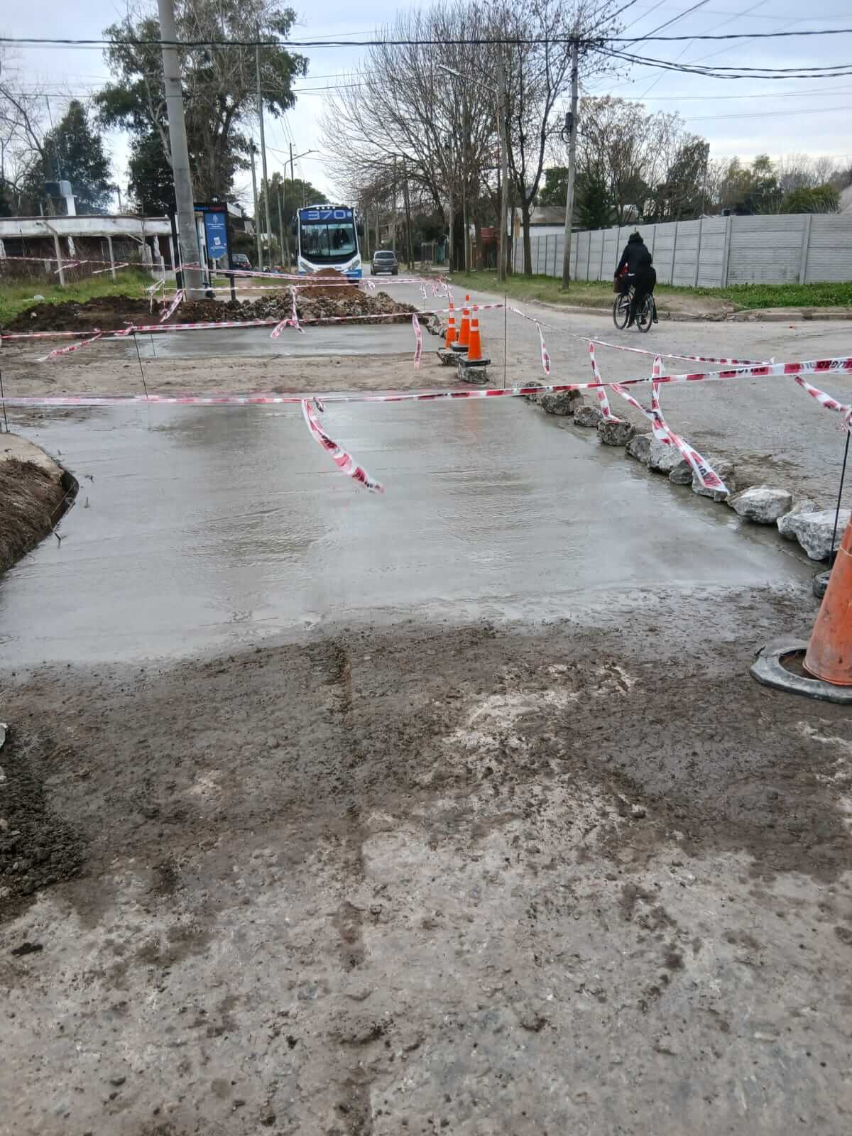 Se utilizó hormigón de secado rápido para que esa esquina esté habilitada al tránsito vehicular a los pocos días, ya que por esa cuadra pasa una línea de colectivos y funcionan una escuela pública y dos colegios privados.